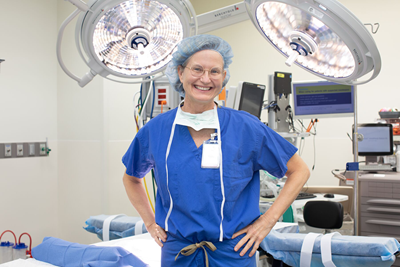 Surgery, she says, was a natural fit for her in her medical training. “It’s almost like a Rorschach test between surgery or medicine, and I clearly belonged with the surgeons, even though that was unsettling to me at the time as I had three small children,” she says. “But it was the dedication to anatomy that got me, and that you are treating and curing disease by changing anatomy. I also love the intensity of it and the decision making. I love the engagement of being in the operating room and satisfaction of doing an operation that will have a profound effect on a patient.”